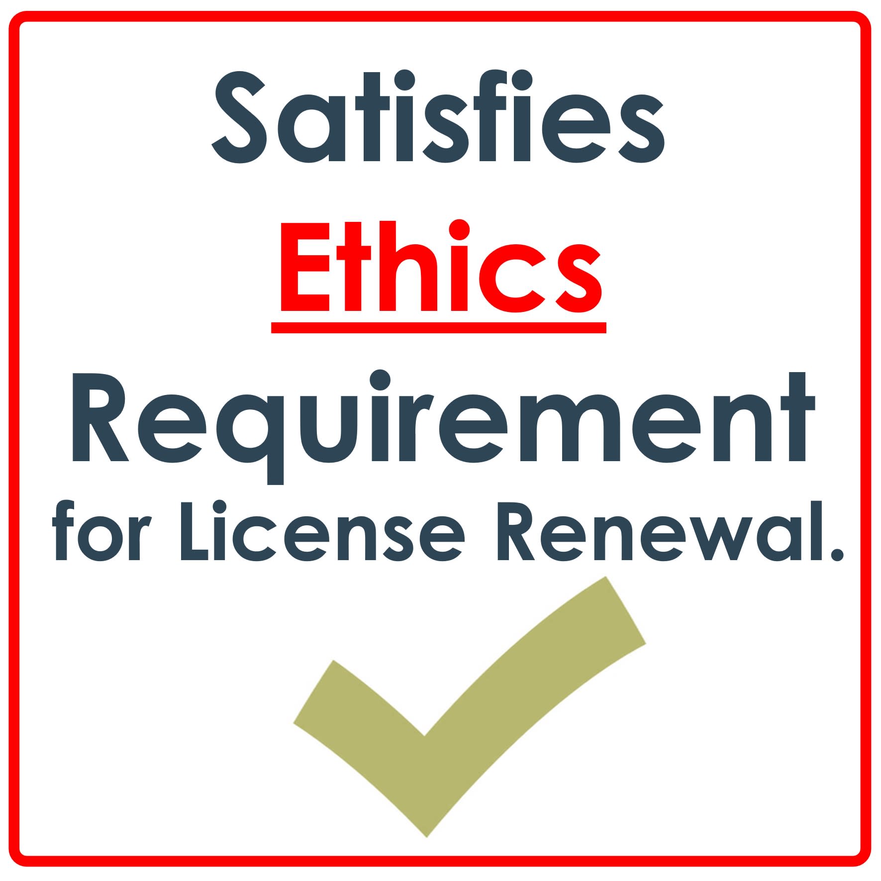 Satisfies Ethics Requirement for license Renewal